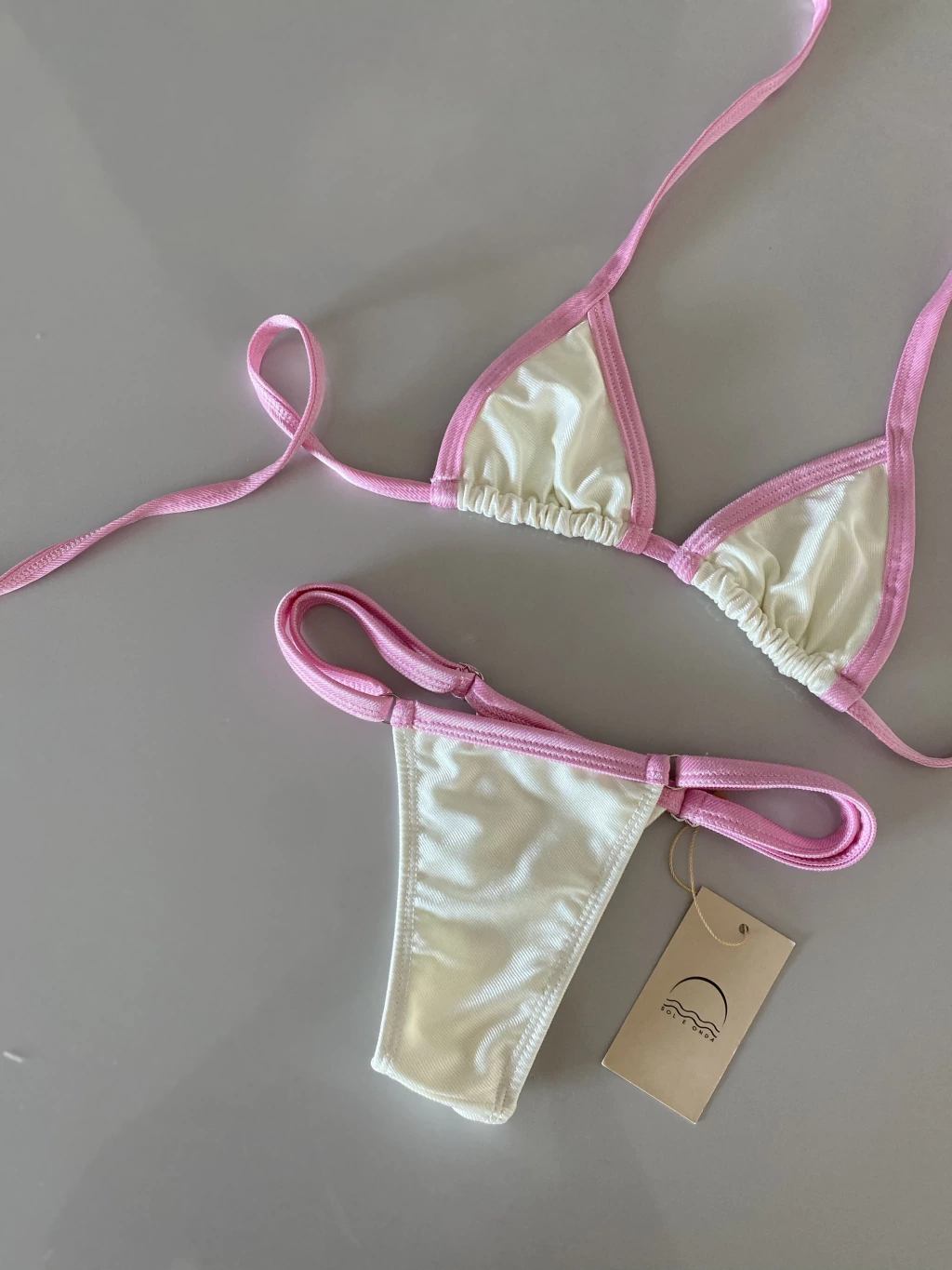 Kini bicolor, em malha premium texturizada, super macia, confortável e todo forrado.